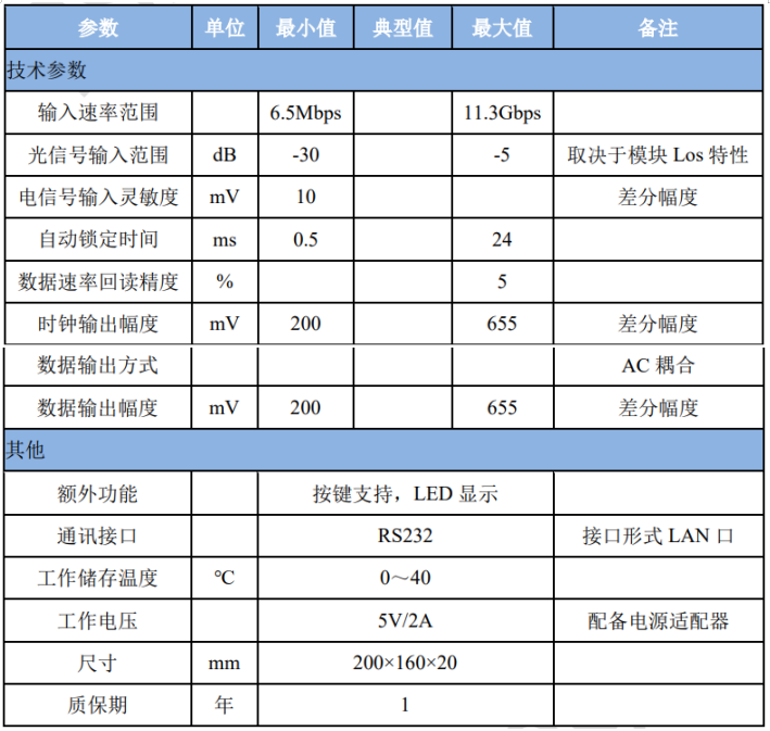 支持24.33~28.05GBd NRZ/PAM4,49.76~56GBd NRZ/PAM4光信号时钟恢复